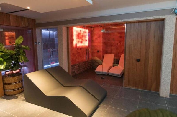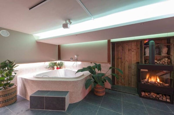 Ontladen en opladen bij Hof van In. Prachtige wellness met saltarium (zoutkamer), sauna, hamam, infrarood sauna, belevingsdouche, jacuzzi, relaxruimte met open haard enz...